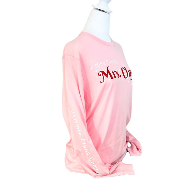 - Festive Design: Features the phrase "Here Comes Mrs. Claus" across the front in bold, fancy letters. Magical stars trail the letters, reminiscent of the enchanting flight of the Jammie Claus sleigh.